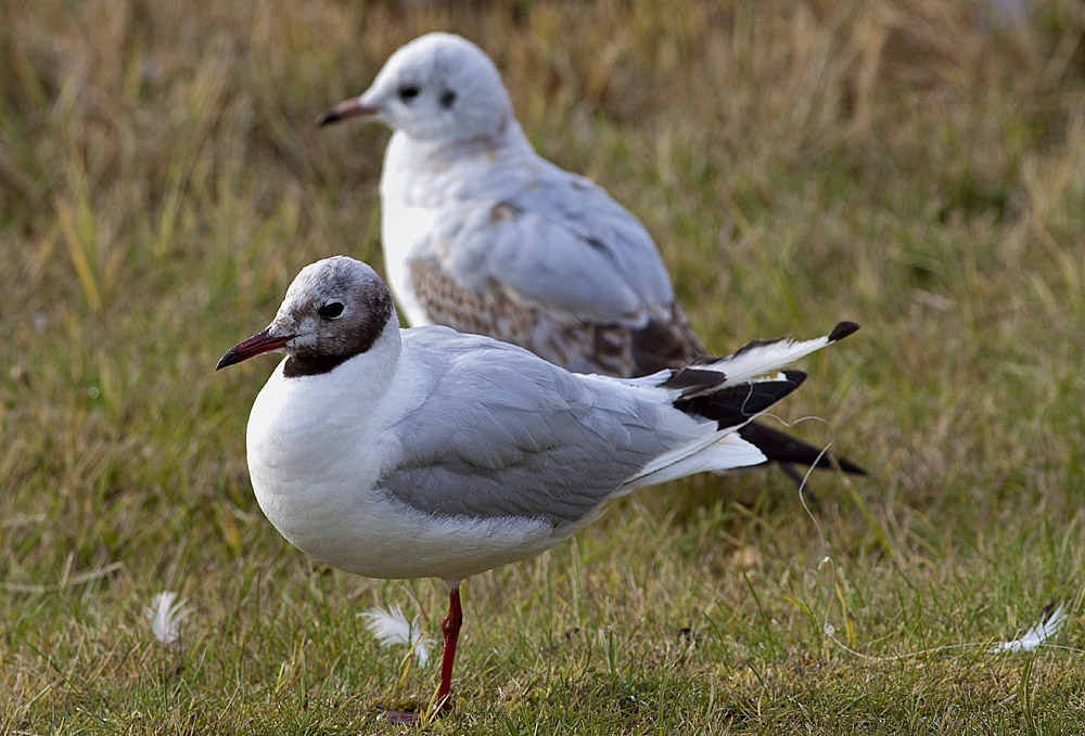 Kirjoitin runsas kuukausi sitten lentorajoitteisesta aikuisesta naurulokista, jonka kaverit jättivät. Lintu oleskelee edelleen Kirkkolammella: lauantaina sen seurassa oli kolme nuorta naurulokkia ja yksi niinikään nuori kalalokki.