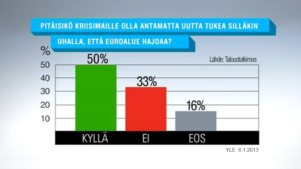 Koska vasemmistoa ja oikeistoa ei perinteisessä mielessä enää ole, todellisemman jakolinjan määrittää esimerkiksi suhtautuminen Euron pelastamiseen kriisimaita tukemalla.