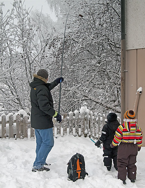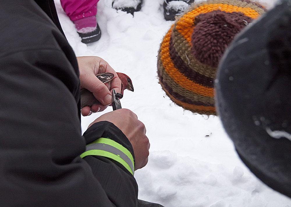 Päiväkotilapsilla riittää muistelemista pitkäksi aikaa: setä tuli pihaan pitkän ongen kanssa, pyydysti kaksi lintua pihlajasta ja pani niille renkaan jalkaan.