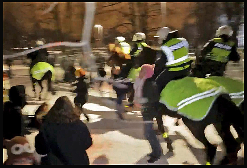 Kaikkea muuta! Happening lähti lapasesta pahemman kerran ja se lienee ollut tarkoituskin. Sekavassa uutisoinnissa väitettiin mm. hevosen talloneen mielenosoittajaa.